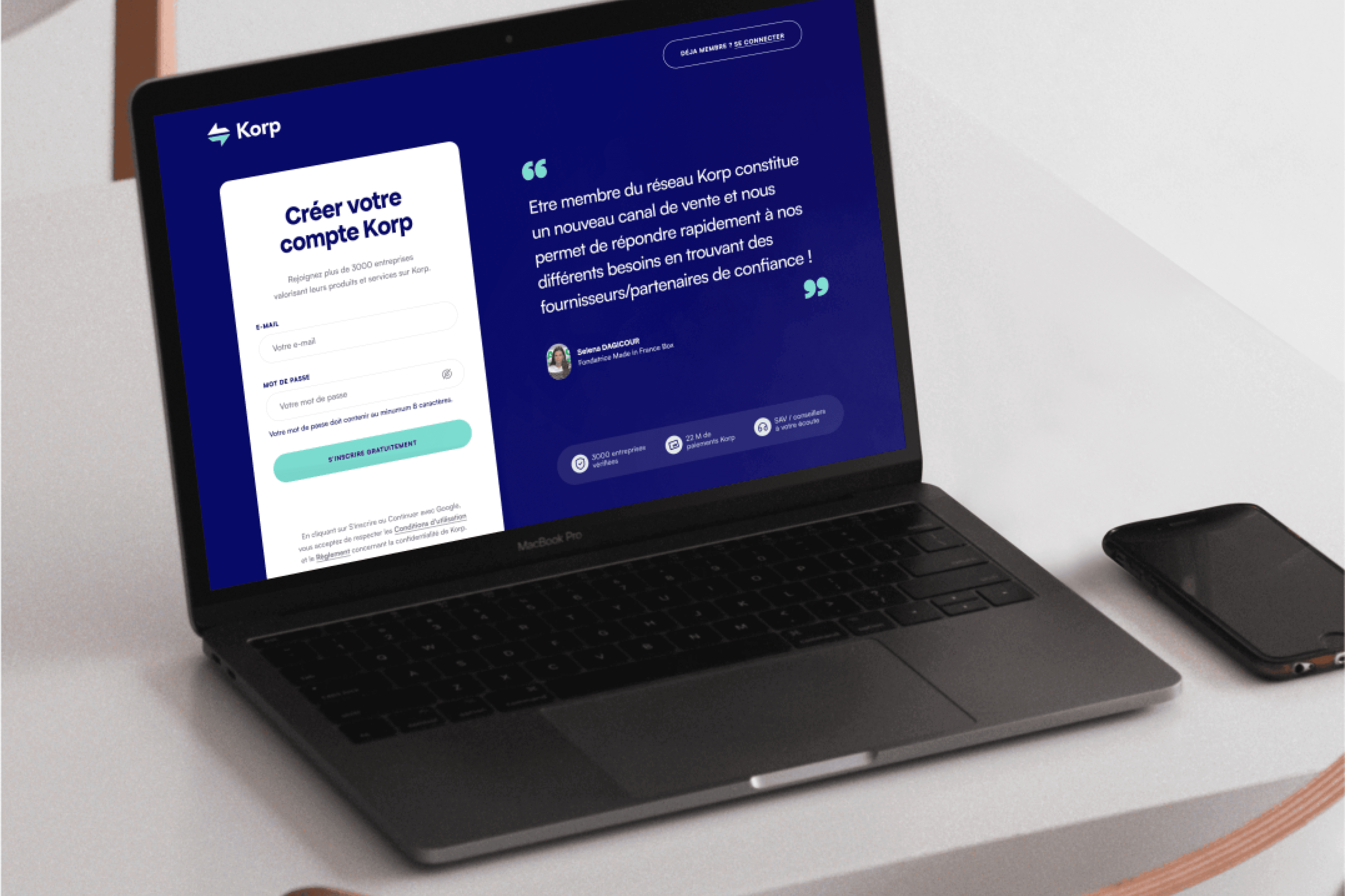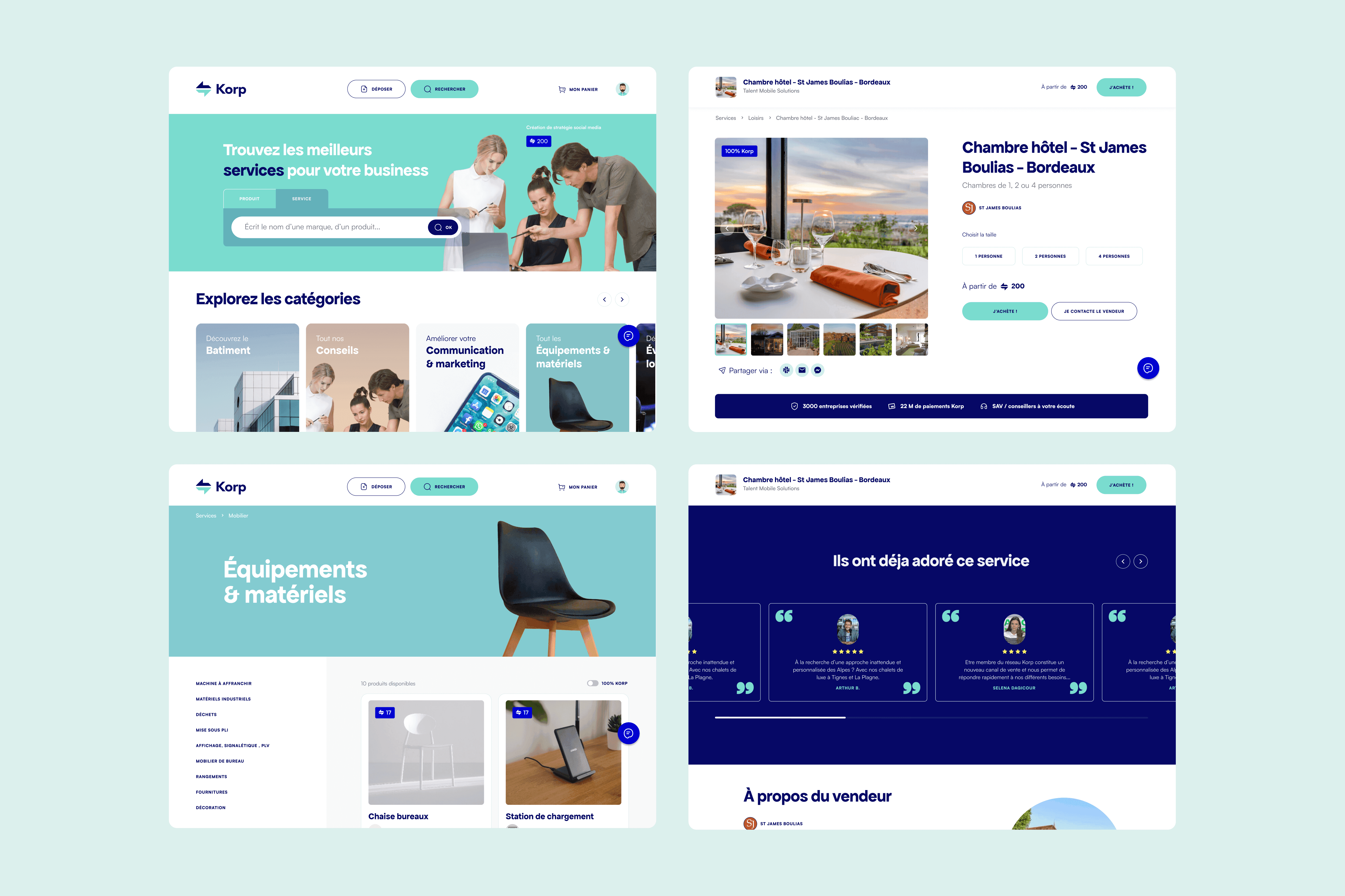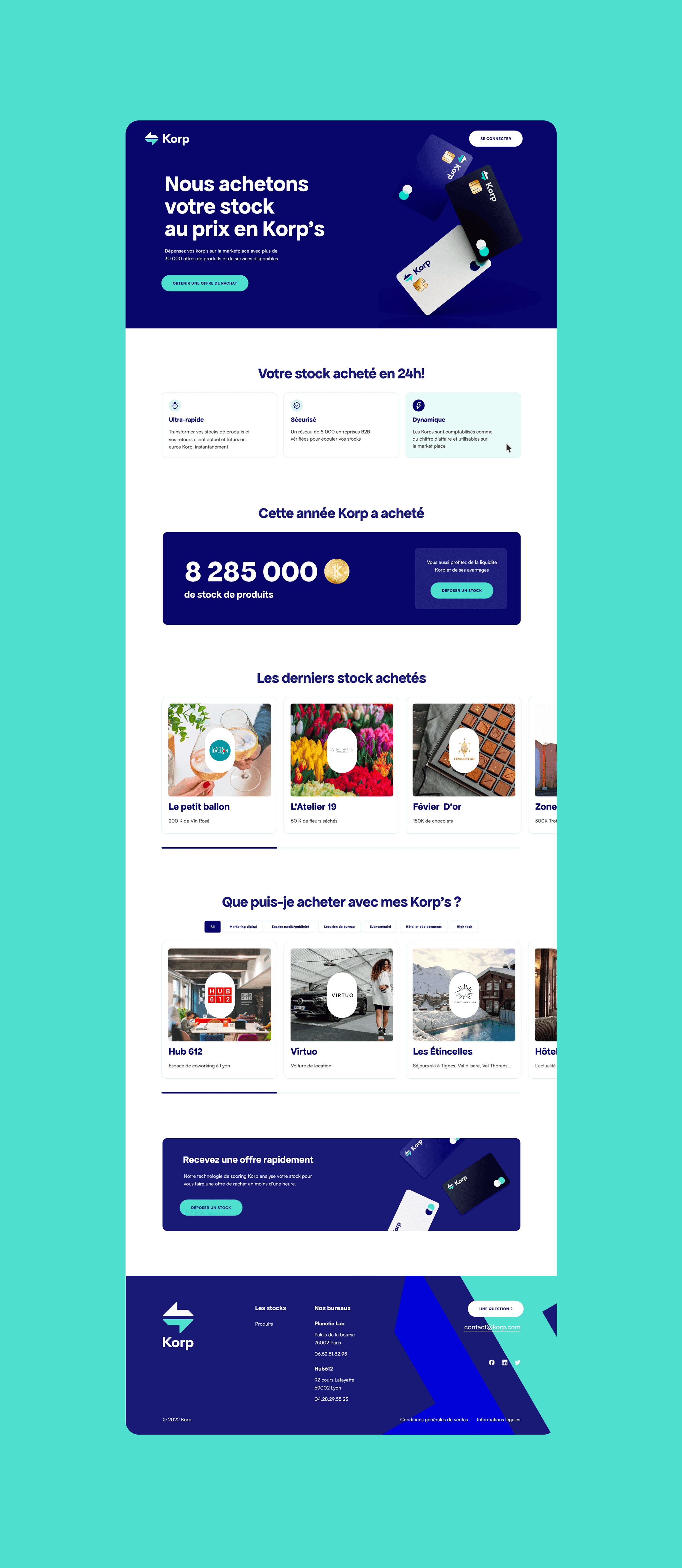 J'ai collaboré avec Korp pour améliorer leur marque en développant une approche de design distinctive et épurée qui les distingue de leurs concurrents et renforce leur image professionnelle, tout en restant fidèle à leur identité initiale. Nous avons également travaillé ensemble à la mise en œuvre de cette identité de marque dans toute l'expérience Korp, de l'intégration à la place de marché, créant une plus grande cohérence et adaptabilité pour leurs utilisateurs cibles.