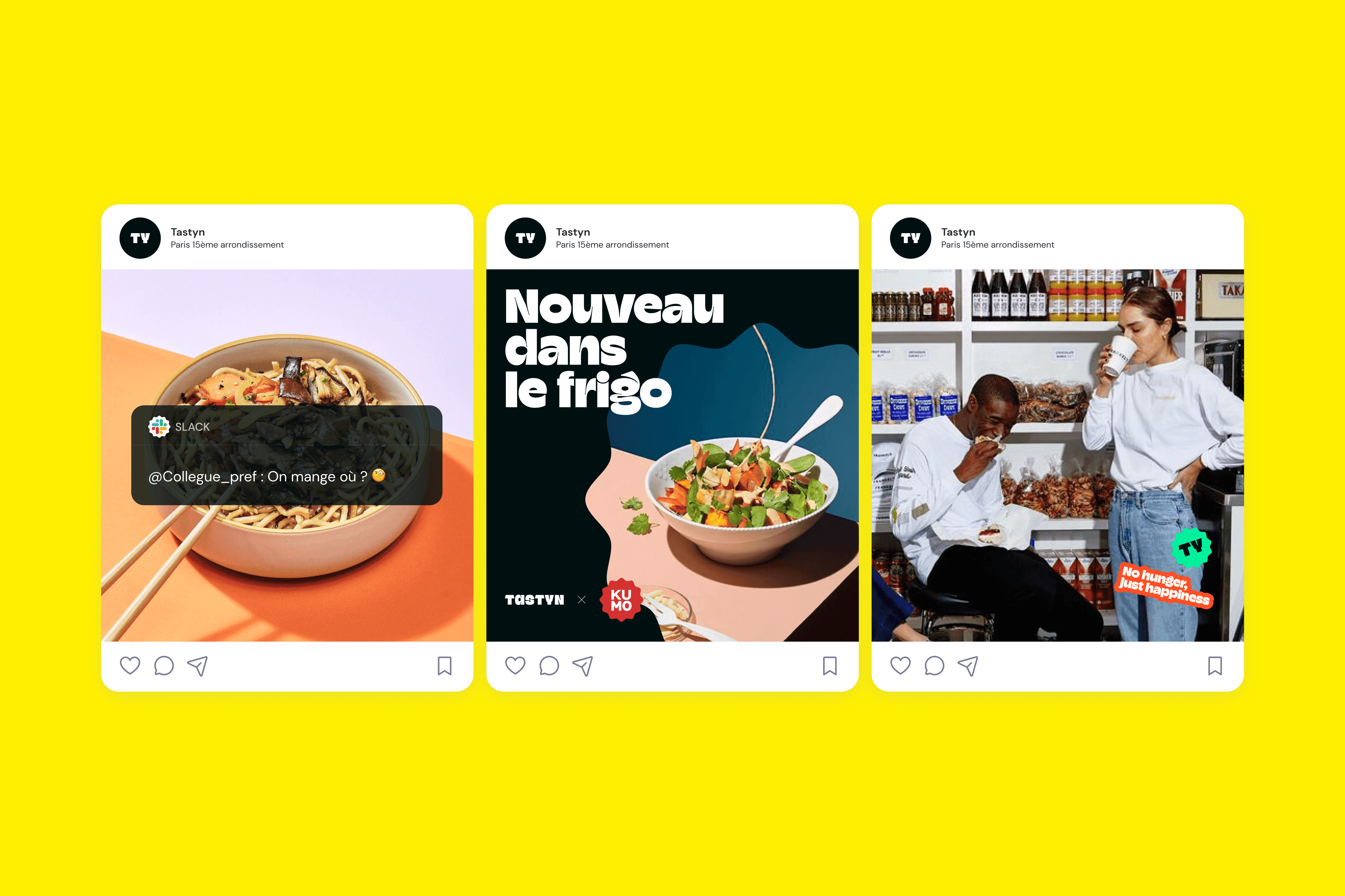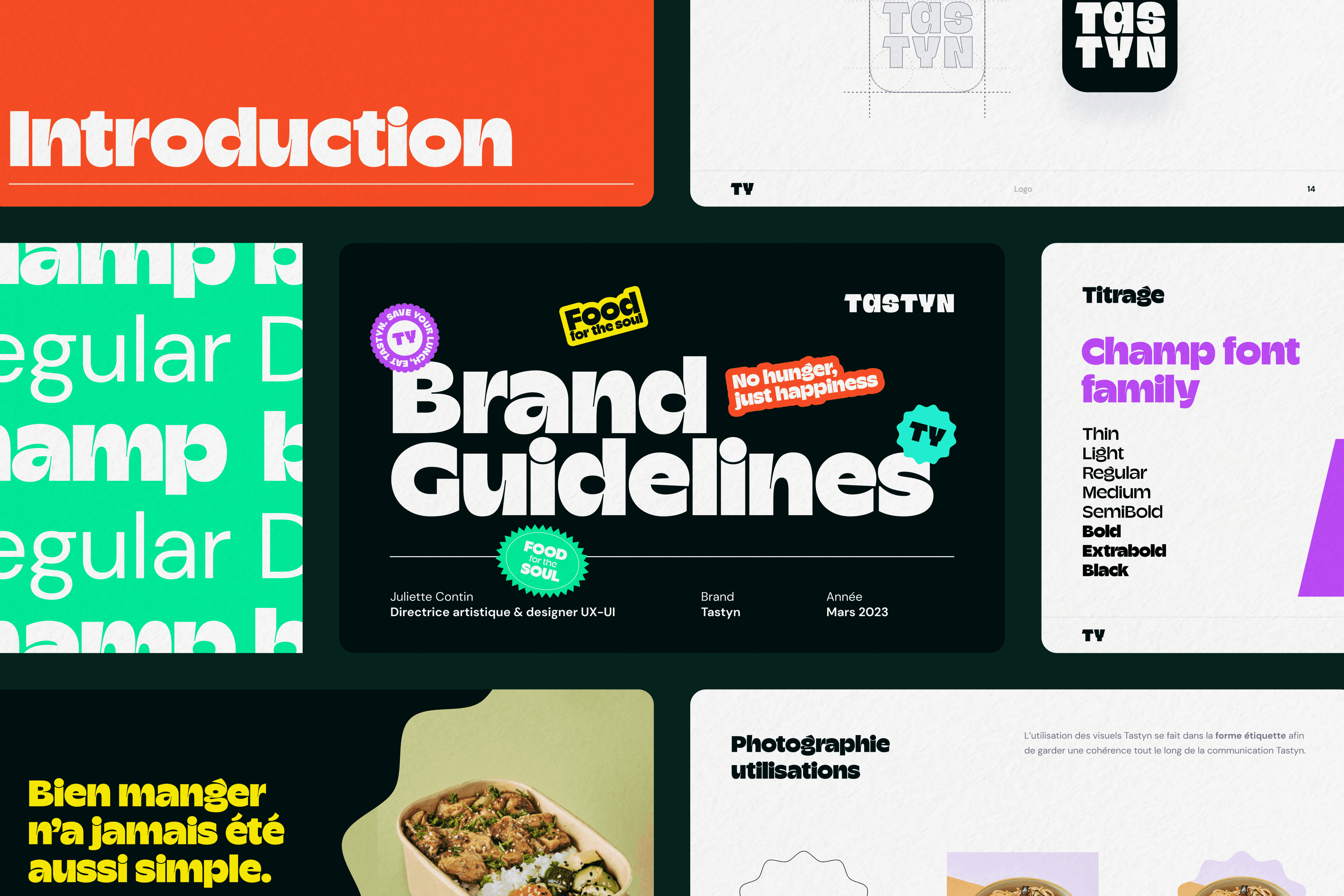 Commissioned to create the identity from scratch, I crafted Tastyn's brand to reinvent healthy food with a focus on pleasure, simplicity, and conviviality. The result is an identity that exudes a vibrant and inviting atmosphere, inviting customers to indulge in delicious and nourishing meals. We made a conscious choice to embrace a modern and playful aesthetic, reflecting Tastyn's commitment to making healthy eating enjoyable and accessible. The color palette combines fresh and vibrant tones, conveying a sense of energy and vitality.